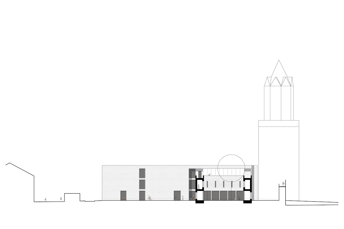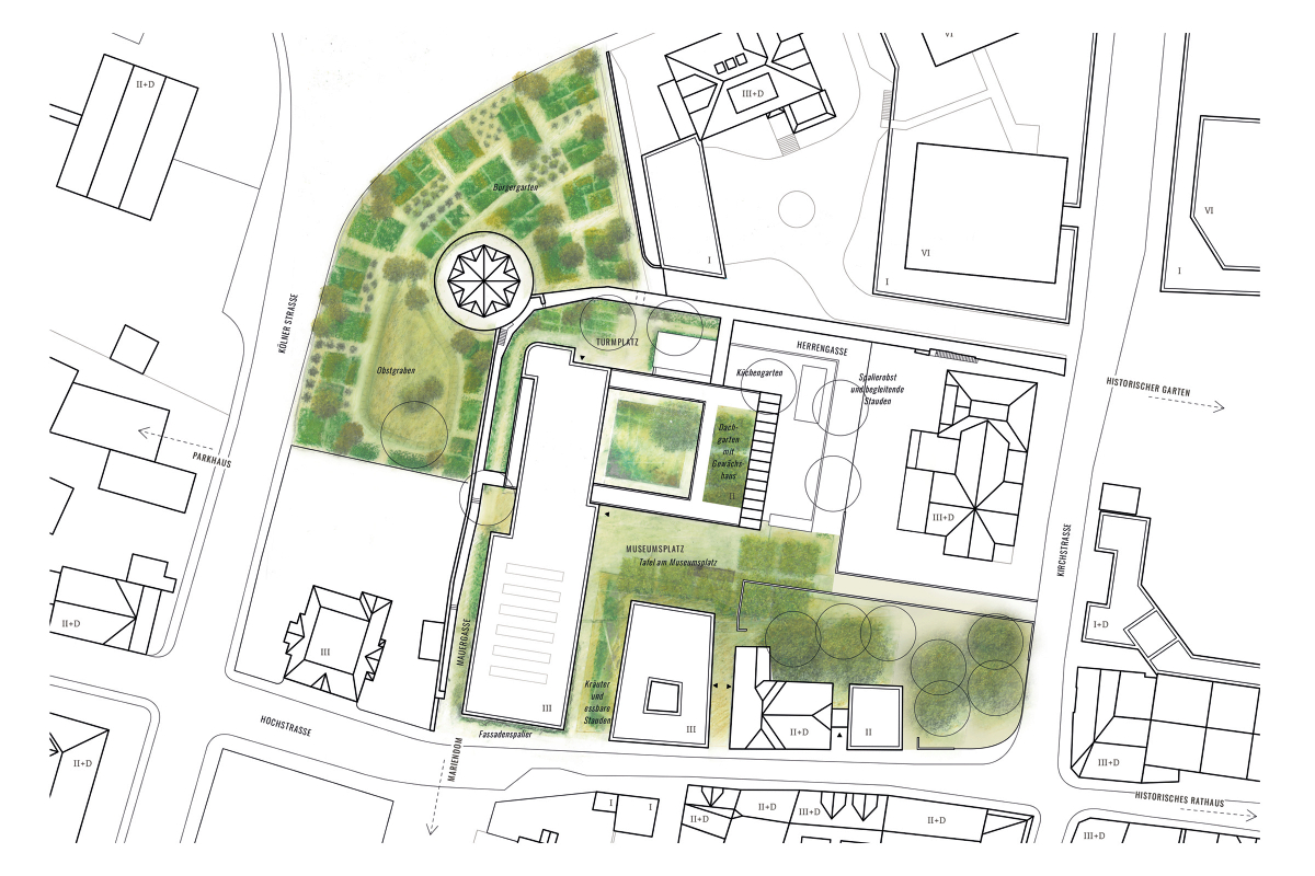 Durch das Abrücken des Museumsgebäudes von der Stadtmauer entstehen 3m breite Wege, die das Erlebnis der Stadtmauer mit dem in Andernach häufig auffindbaren Typus einer 3m breiten Gasse verbinden. Diese Gassen stehen im Zusammenhang mit den übrigen Bereichen der zu großen Teilen erhaltenen und erlebbaren Stadtmauer.